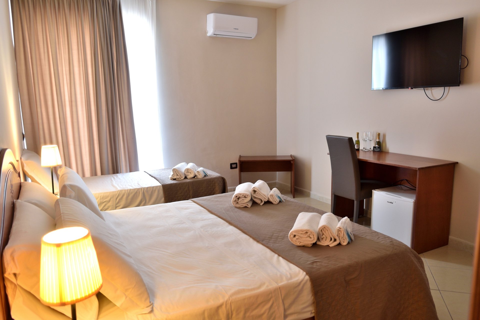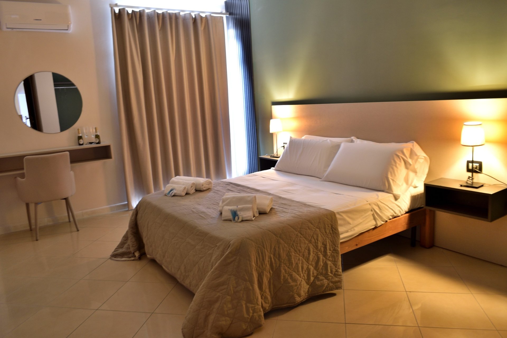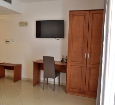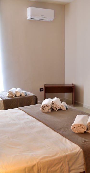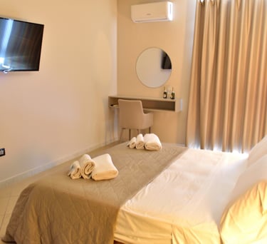 La camera deluxe offre comfort e stile, con arredi moderni e un'atmosfera accogliente. Perfetta per viaggiatori in cerca di eleganza e relax durante il soggiorno.